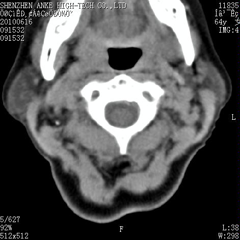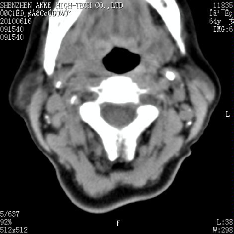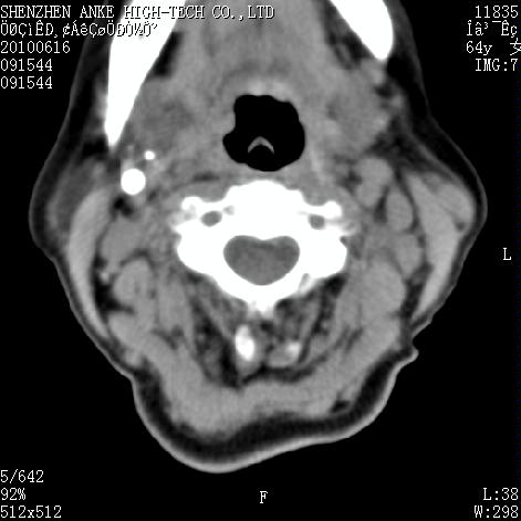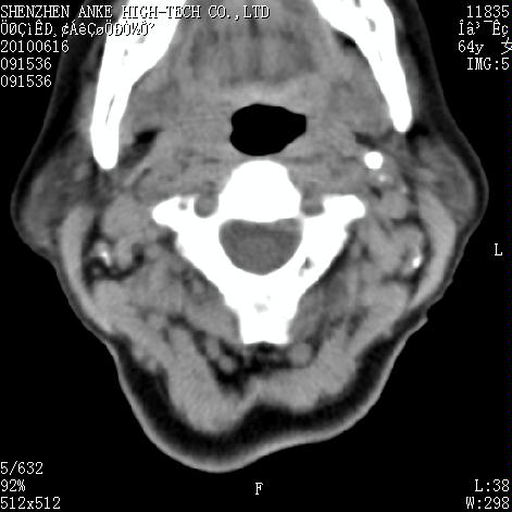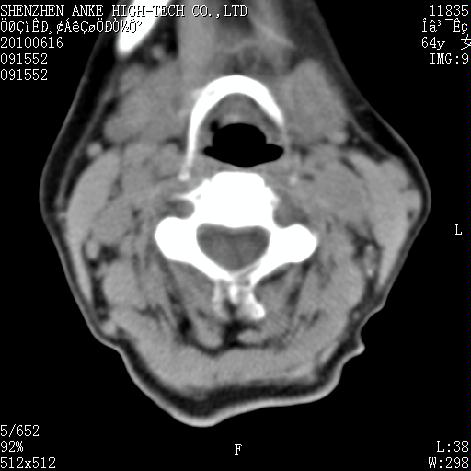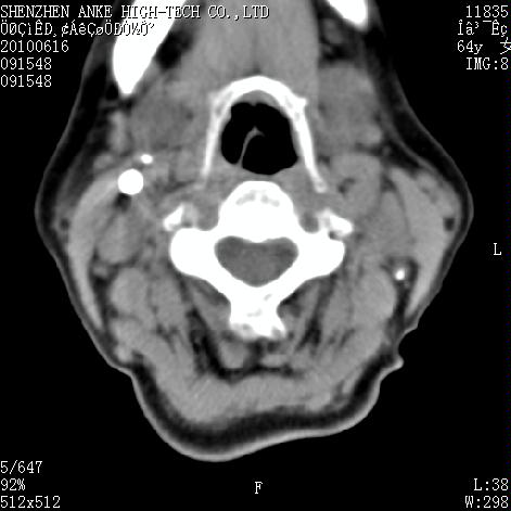 右侧甲状腺癌伴右颌下腺淋巴结转移!建议增强!