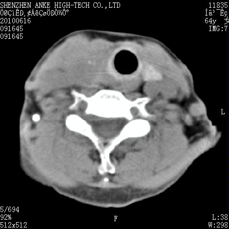 标题: CT27132:患者女,64岁,颈部及全身多处包块,现觉吞咽困难4