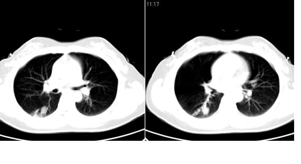 女 40岁,胸片体检发现右肺肿块,无任何症状。