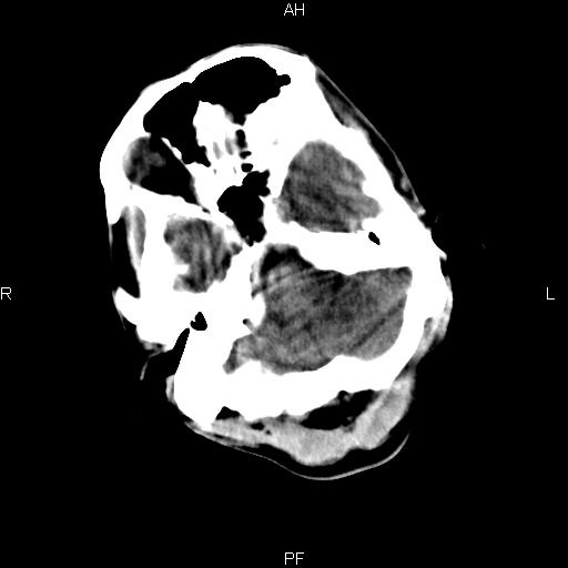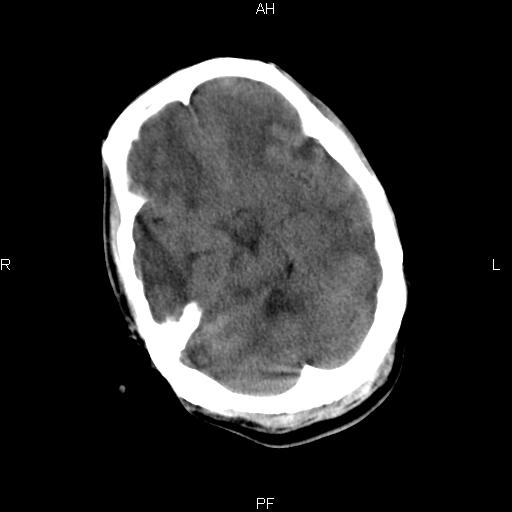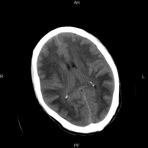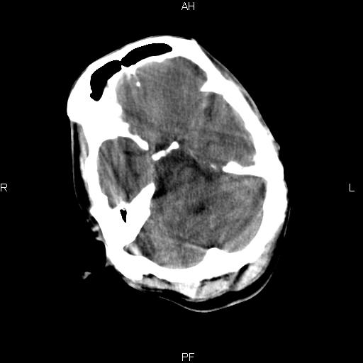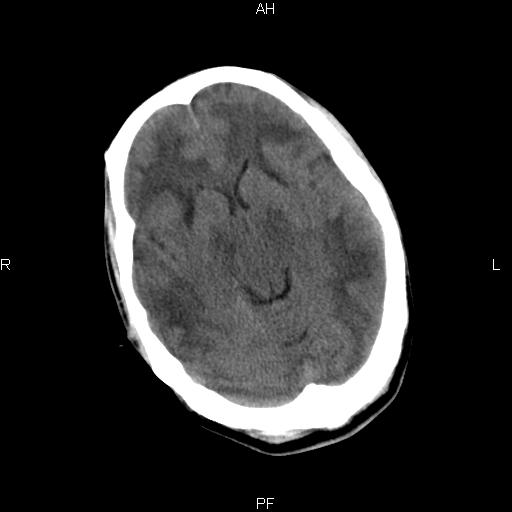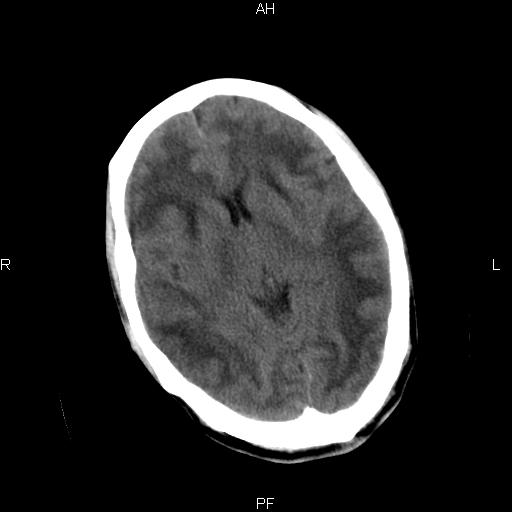 男性,45岁,缄默少语,四肢无力一个月。骨窗未见明确异常。