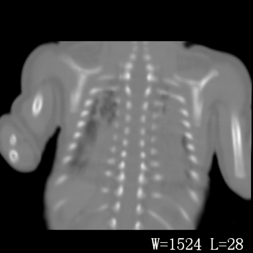 以下是引用改行者在2010-7-8 22:13:00的发言:[br]两肺野透光度降低伴细颗粒状影,两肺下叶见实变影,其内见支气管充气征。 多考虑新生儿肺透明膜病。