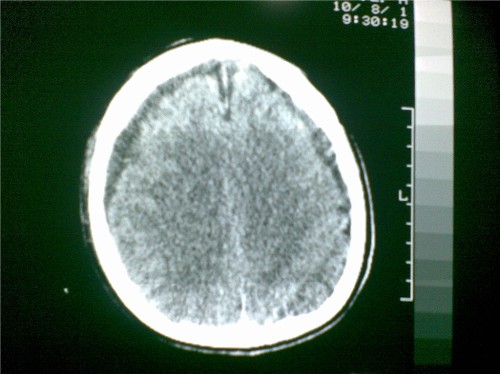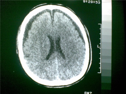 标题: CT28096:男,75岁,外伤10天后,现在恶心、呕吐。是硬膜下积