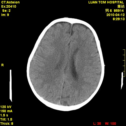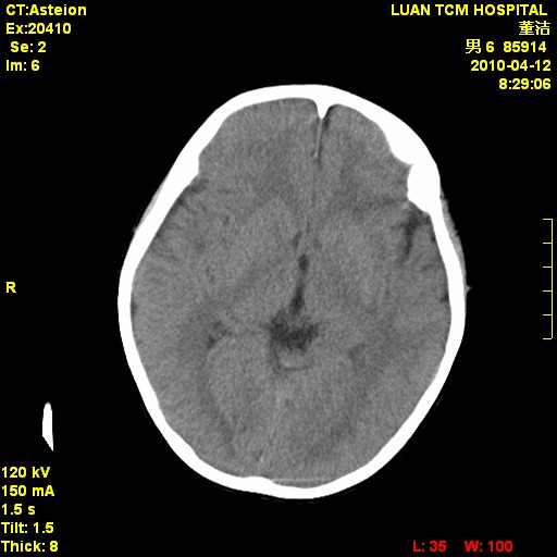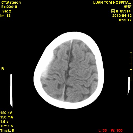 右侧额顶部自颅板向内近似半圆高密度影,周围无明显水肿,考虑:脑外血肿?脑膜瘤?淋巴瘤?