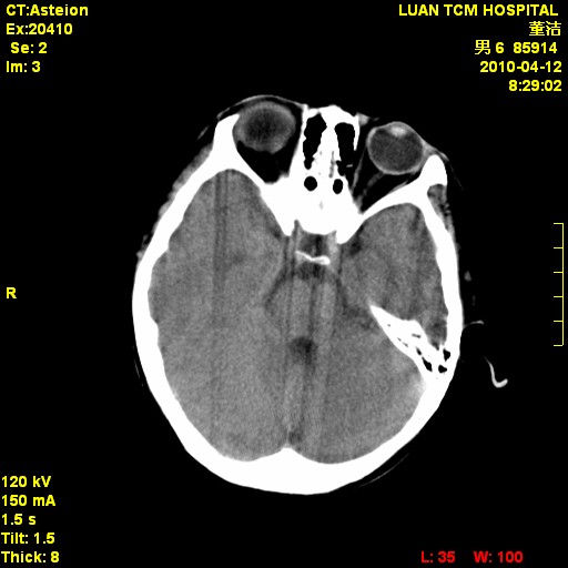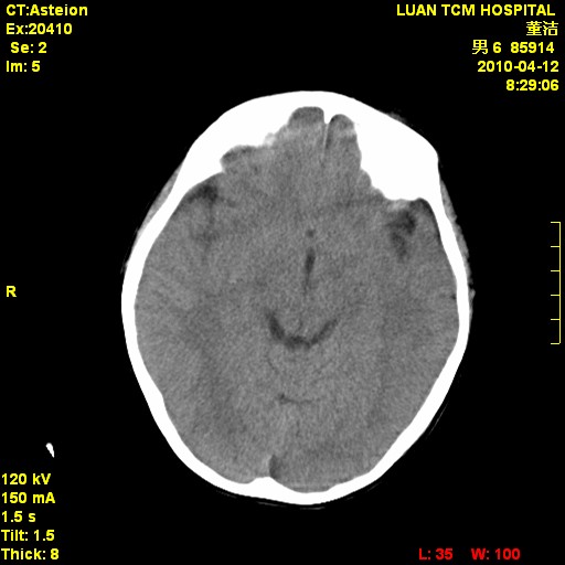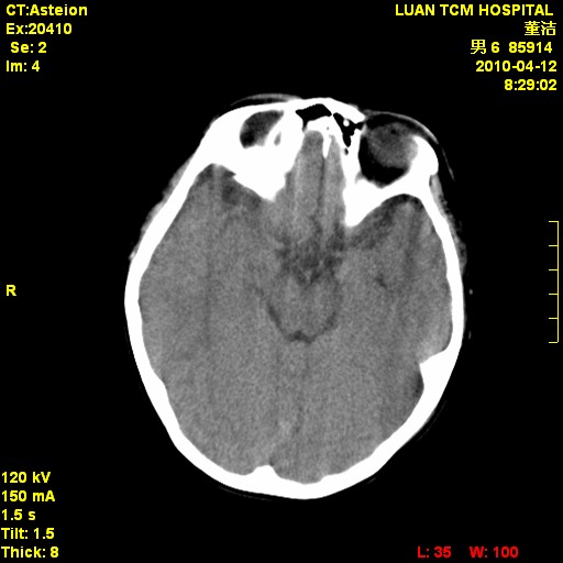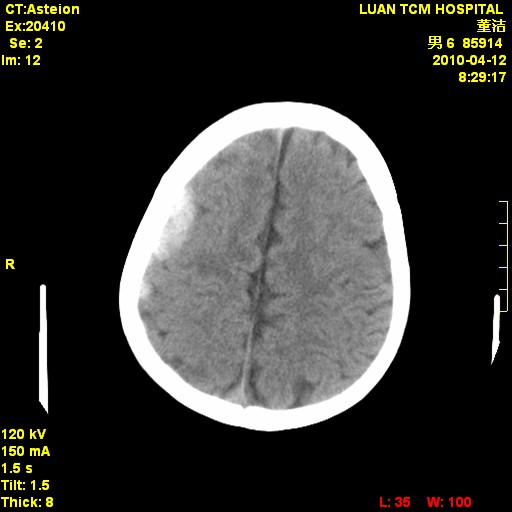 考虑右侧额顶部颅内脑外血肿(edh可能)。