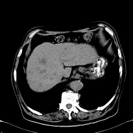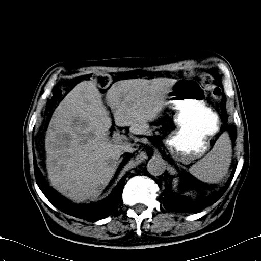 考虑胰腺钩突癌并肝内转移,建议增强扫描进一步检查。