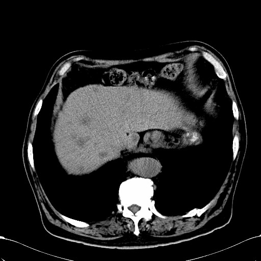 肝脏多发低密度灶,胰头似呈低密度,胰管扩张,建议增强,