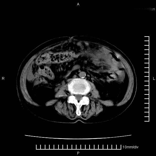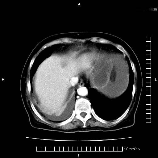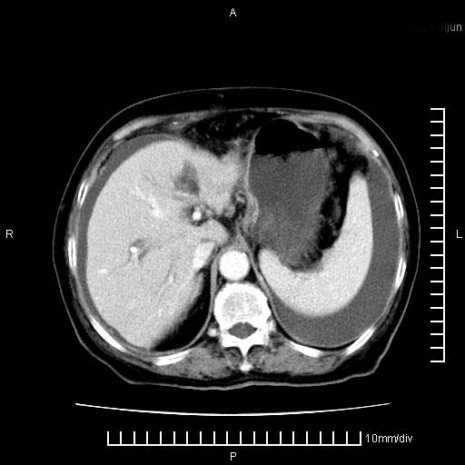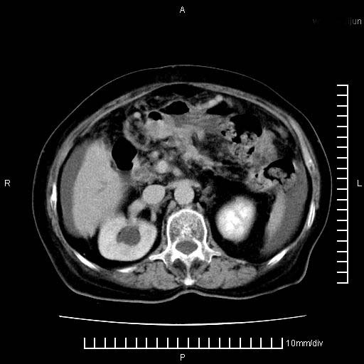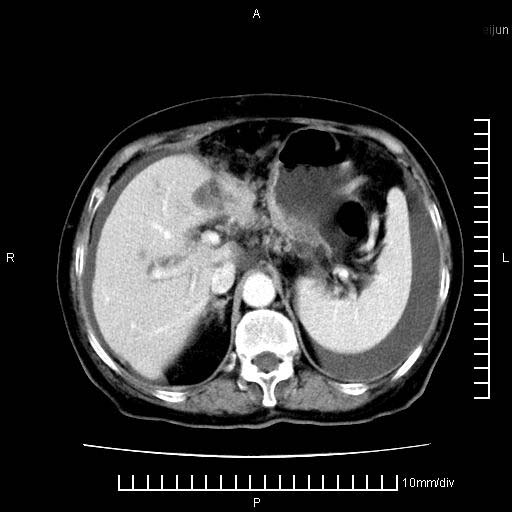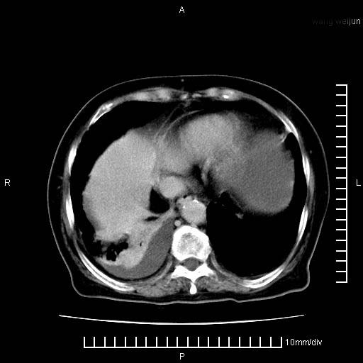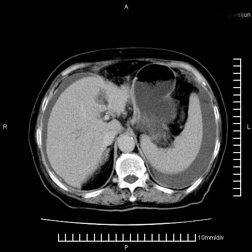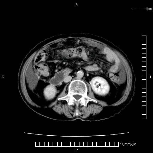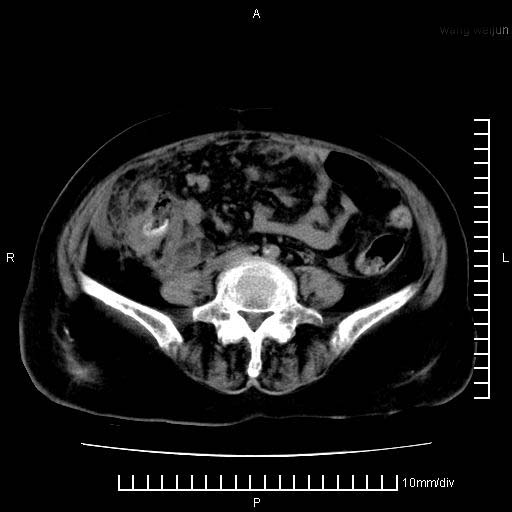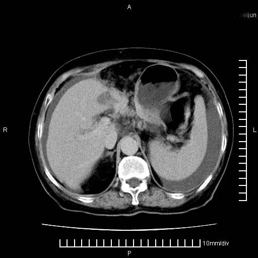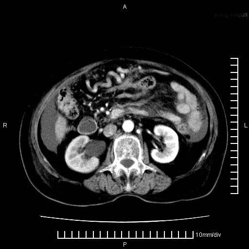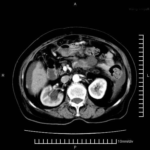 考虑胰腺ca伴腹膜腔转移、肝左叶转移、右肾积水。右胸腔积液。支持