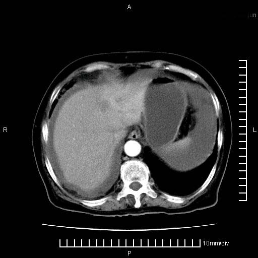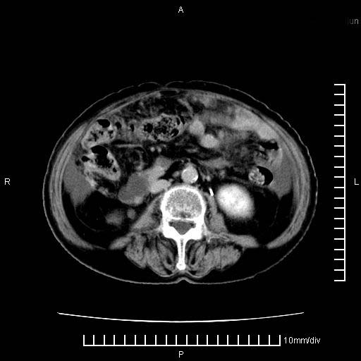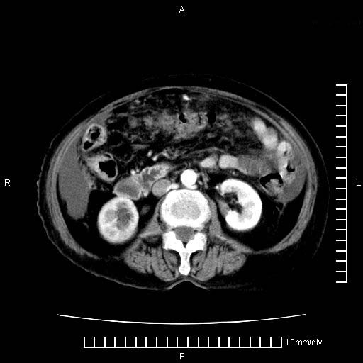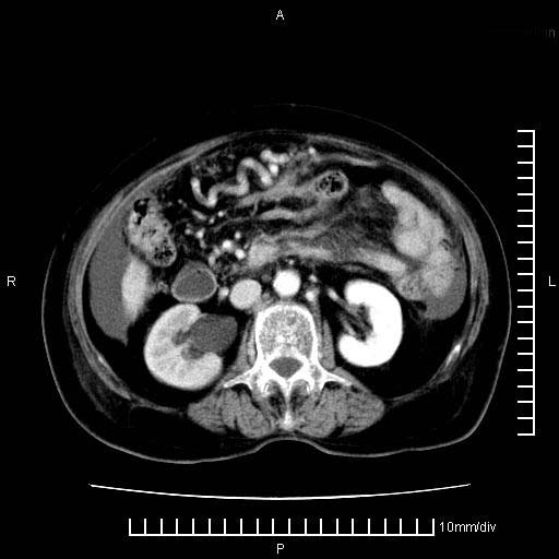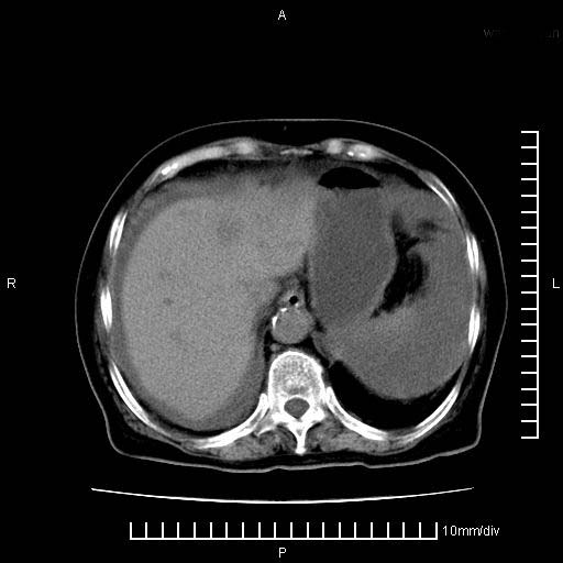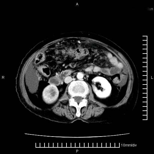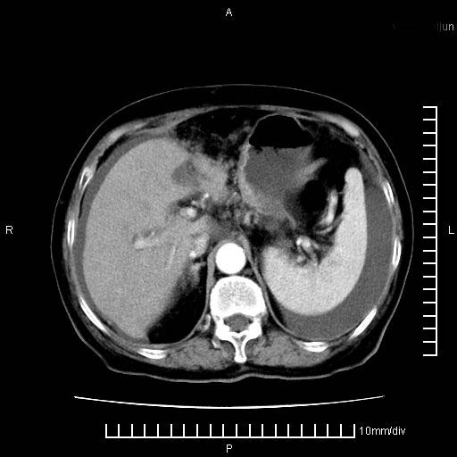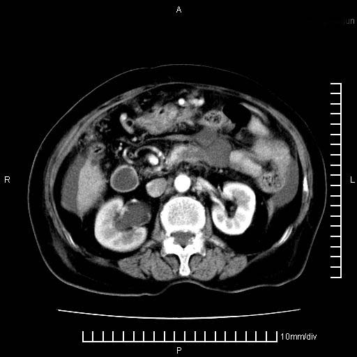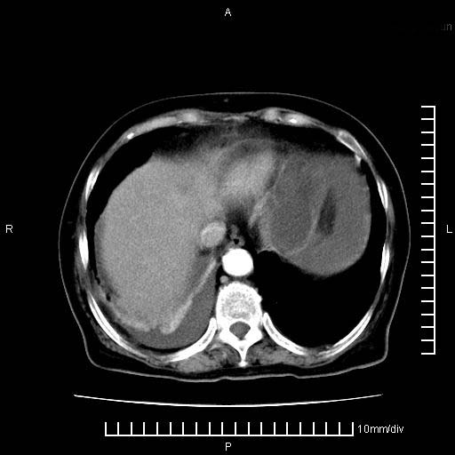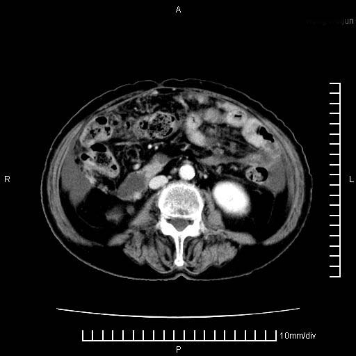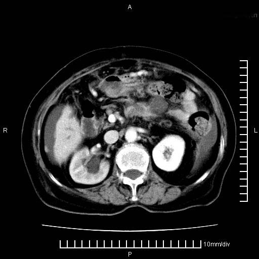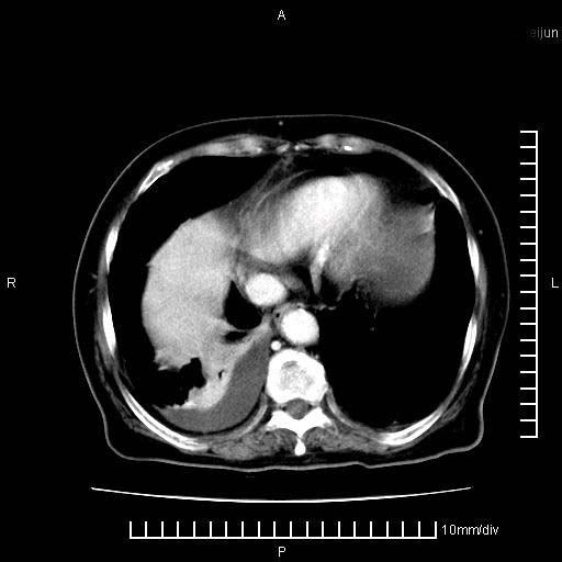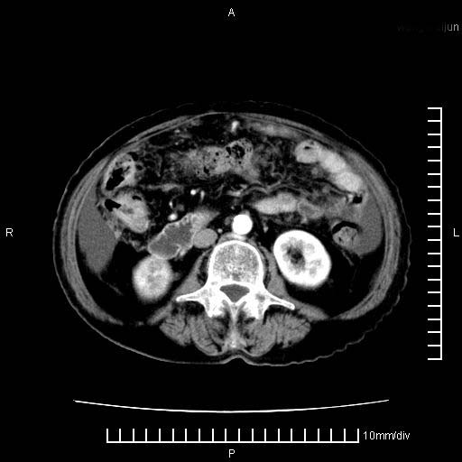 考虑胰腺ca伴腹膜腔转移、肝左叶转移、右肾积水。右胸腔积液。支持