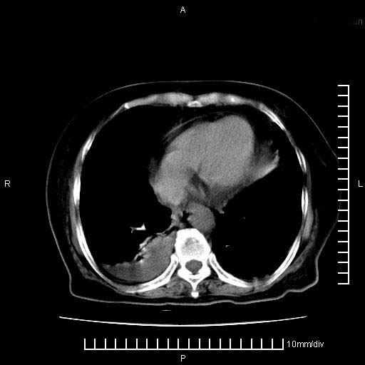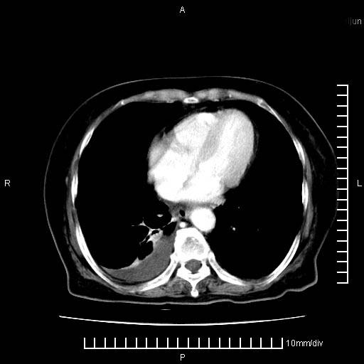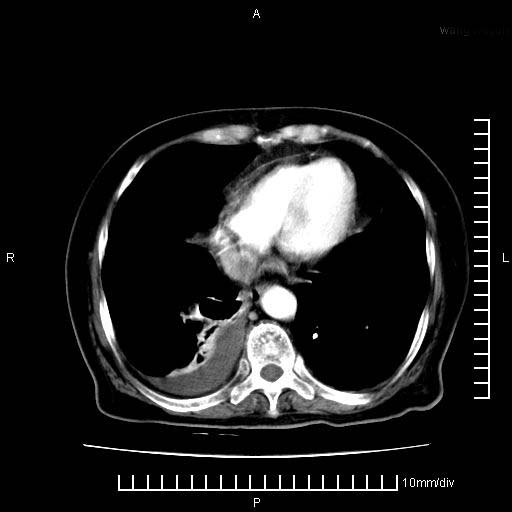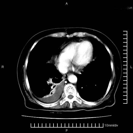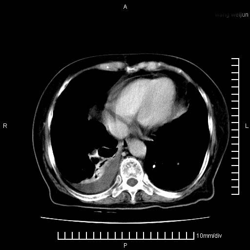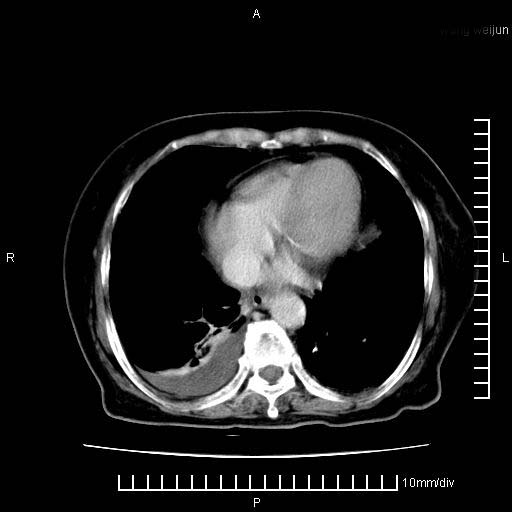 3。右胸腔积液,伴右肺下叶部分萎陷。