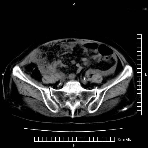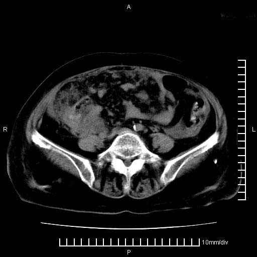 上腹疼痛月余,外院核磁诊断胰腺癌。现临床示右下腹可明显触及包块,可片子上怎么没有看到?