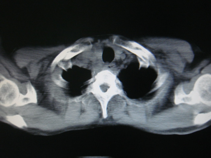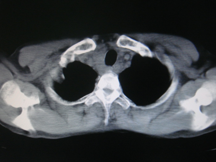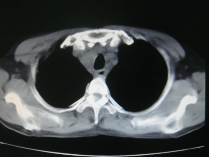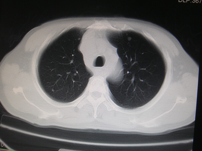 以下是引用科室第一人在2010-8-13 5:59:00的发言:[br]两肺多发结节灶及纵膈淋巴结肿大考虑为转移