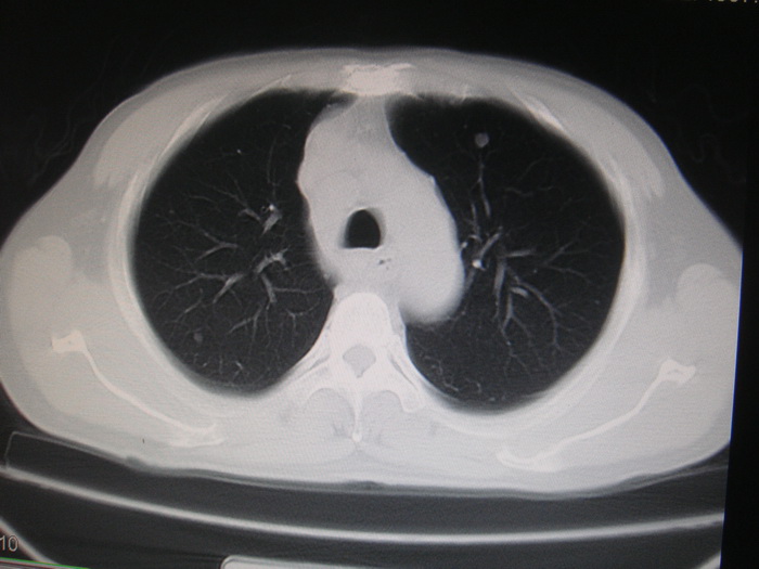 以下是引用随光逐影在2010-8-13 11:07:00的发言:[br]两肺多发性转移瘤,纵隔淋巴结转移瘤。