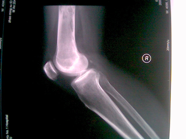 翻翻手机发现2年前在医院实习时,无意中拍下的片子`男大约60~65y把`以右膝关节痛为主诉来诊`带我的老师要求他住院`患者决绝了`后来老师说你不能下地走路了`在走就病理性骨折了`正好一周后的一天这个患者以`右股骨干骨折来诊`应了老师的话,因此,我对这个老师一直敬佩不已