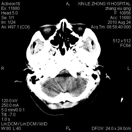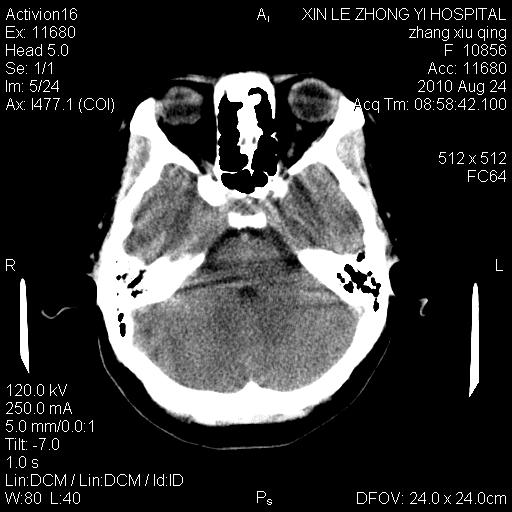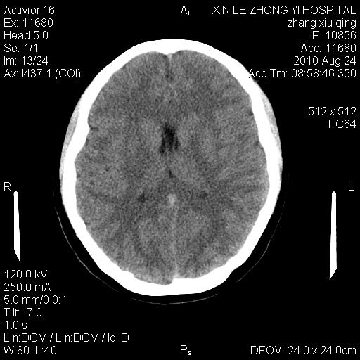 伪影干扰下,所见无水肿、无占位,建议定期复查。