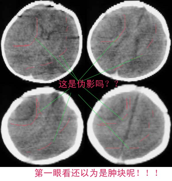 结果:脑缺氧缺血脑病。其它的确是伪影,下午以经排除,真不好意思。幸好没误诊,谢谢分析对的战友!!
