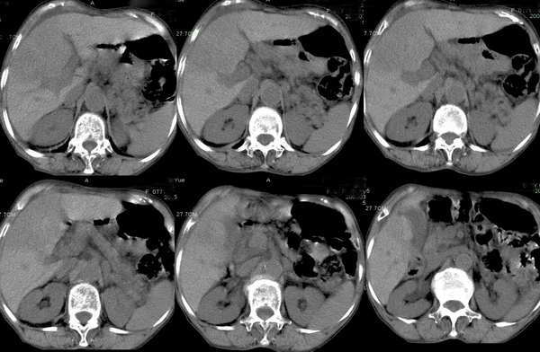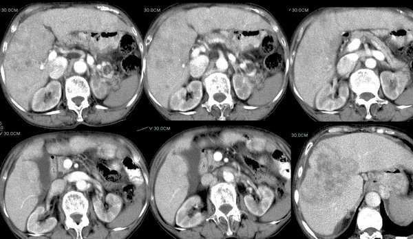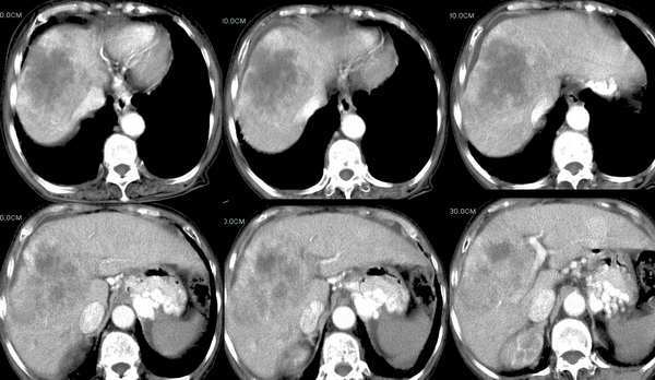 标题: CT2133:[原创]肝脏大片状低密度病灶请求会诊