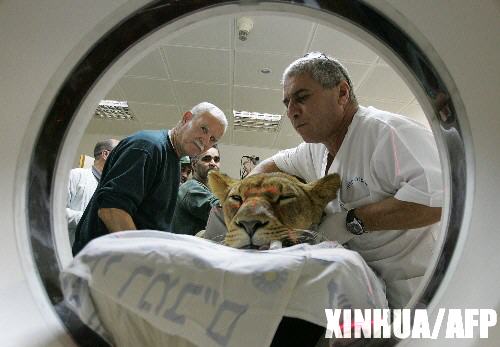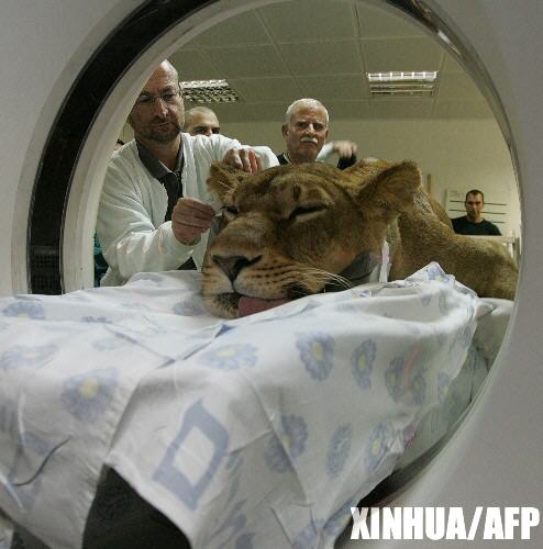 在以色列西北部港市海法,一只两岁半的非洲母狮在做ct之前接受医生检查,有意思!