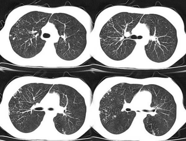 以下是引用x线在2006-2-2 17:37:00的发言:[br]结合病史支持“ct拟诊:双侧tb,左下叶结核球,左下叶局限性轻度支扩。”双下叶及左舌叶淡薄的毛玻璃密度影,我考虑为炎性渗出。另:是否合并霉菌感染须进一步检查确定。
