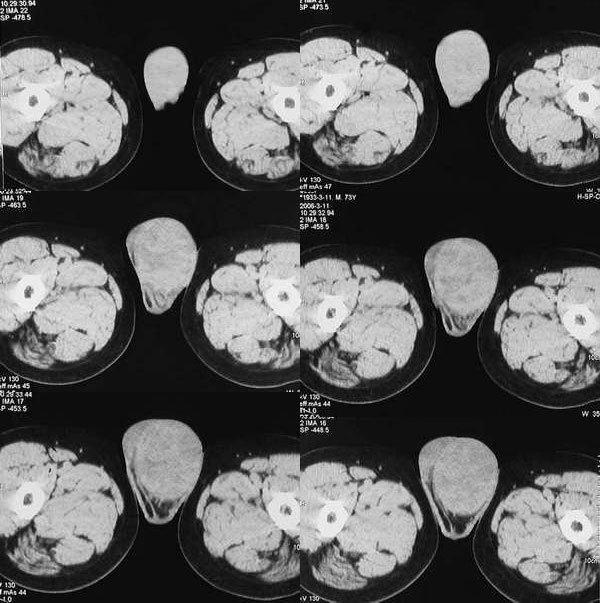 男 73 睾丸肿块3月,病人不原增强.直接手术