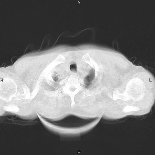 右肺上叶淡磨玻璃影,考虑炎症改变。
