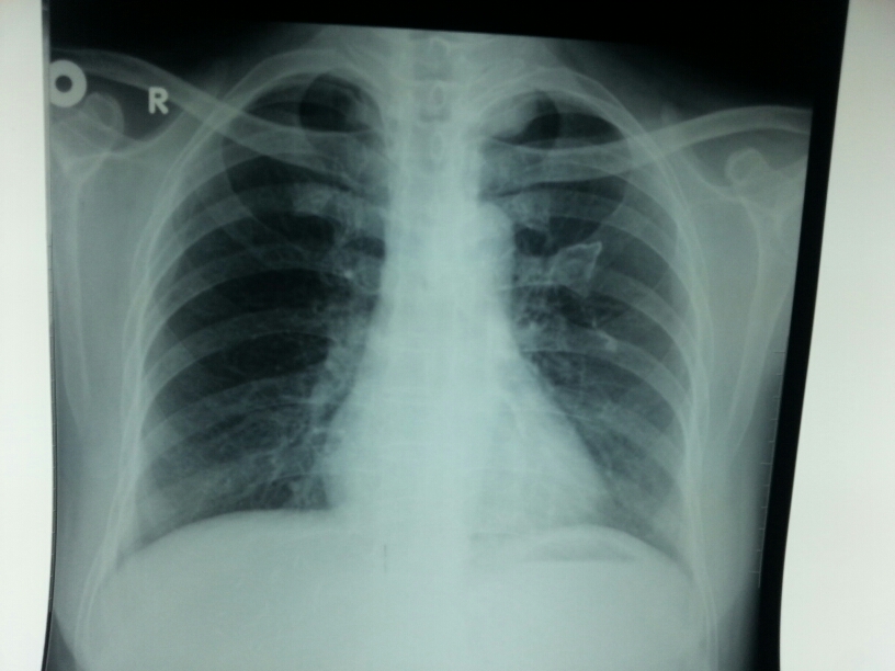 左肺尖纵隔旁结节灶,边缘光滑。神经源性肿瘤?肺部肿瘤?建议CT检查。