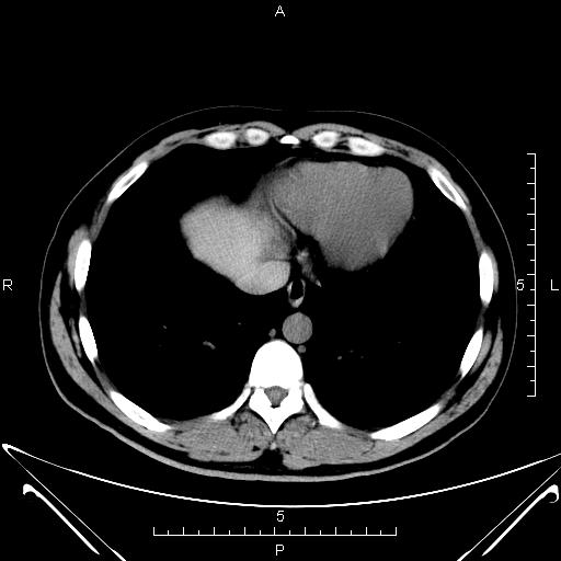 男,43岁,体检彩超发现肝右叶低回声结节,内可见斑点状强回声,后伴声影。