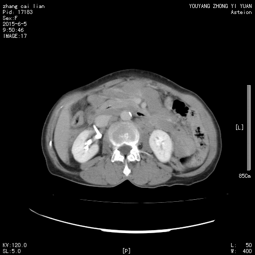 患者,女性,65岁。发现腹股沟包块1个多月。病人无发热,有消瘦。病人本来扫的是下腹部,后来发现有淋巴结肿大,又加了几层。