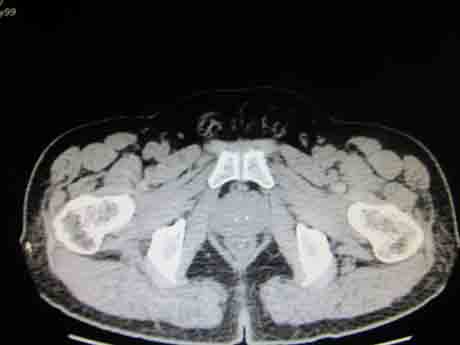 男,58岁,左侧阴囊区密度增高影,诊断什么病?谢谢。
