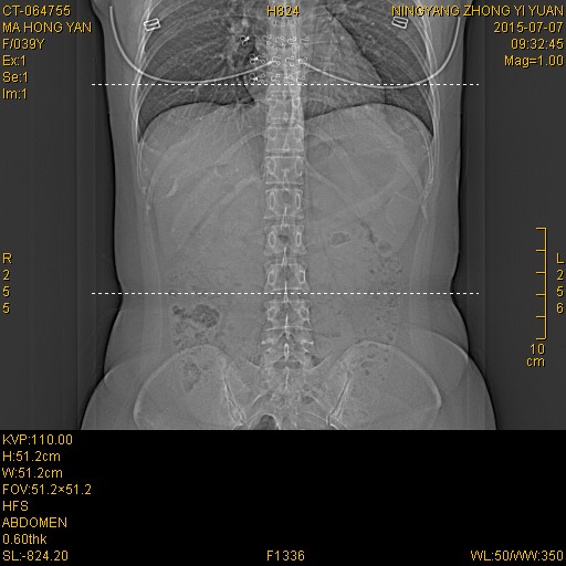 女。39y 夜间腹部不适,漓芯;两次CT检查图像前后相差10天