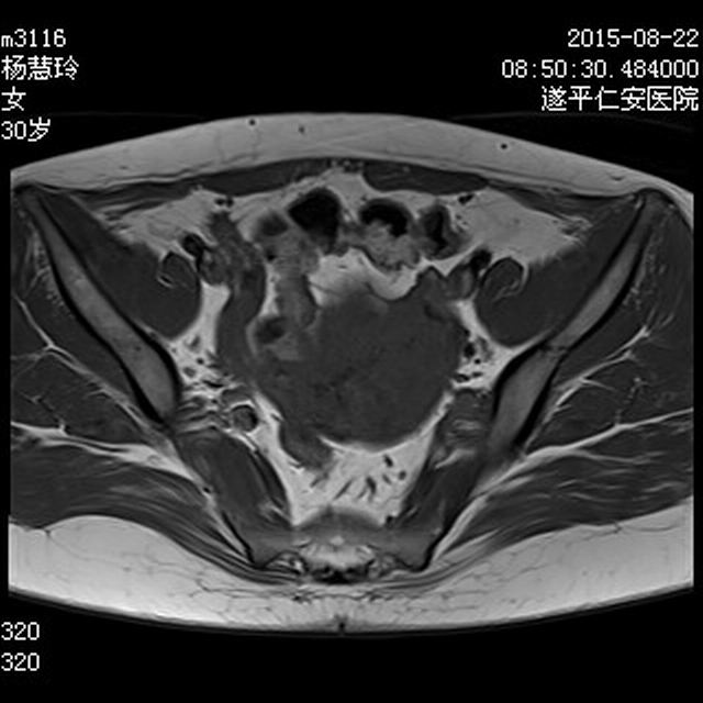 最近翻看图像时看到这个病例,记得有病理的,终于在U盘中找到。病理结果为子宫疤痕处妊娠。上图扫描序列按顺序应为TIWI T2WI DWI T2WI矢状位 矢状位增强图像。