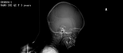 女,3岁。抽搐10分钟。 初步诊断:惊厥。 今行头部CT扫描,图像如下: