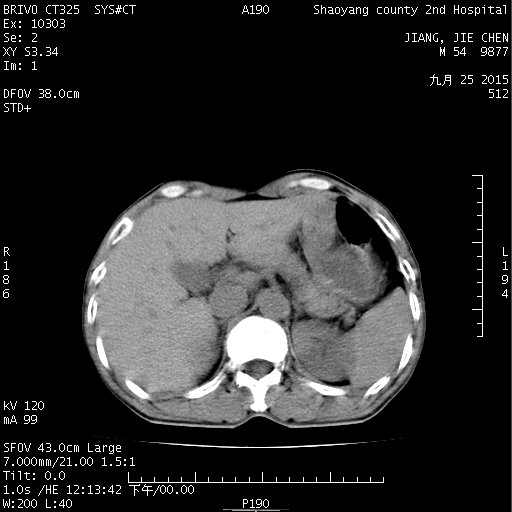 盆腔左侧似见点状高密度影,左侧输尿管远端小结石可疑。