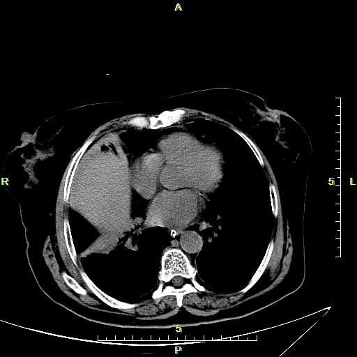肝右叶见低密度影,胆囊壁增厚且强化,周围见低密度影,未见强化,右侧胸腔积液。考虑:急性胆囊炎伴胆囊窝积液,肝右叶囊肿,右侧胸腔积液。