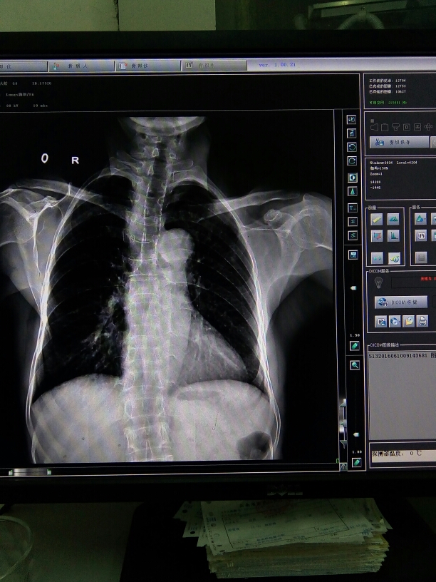 气管及左右主支气管见高密度影,考虑:气管及左右主支气管软骨钙化。