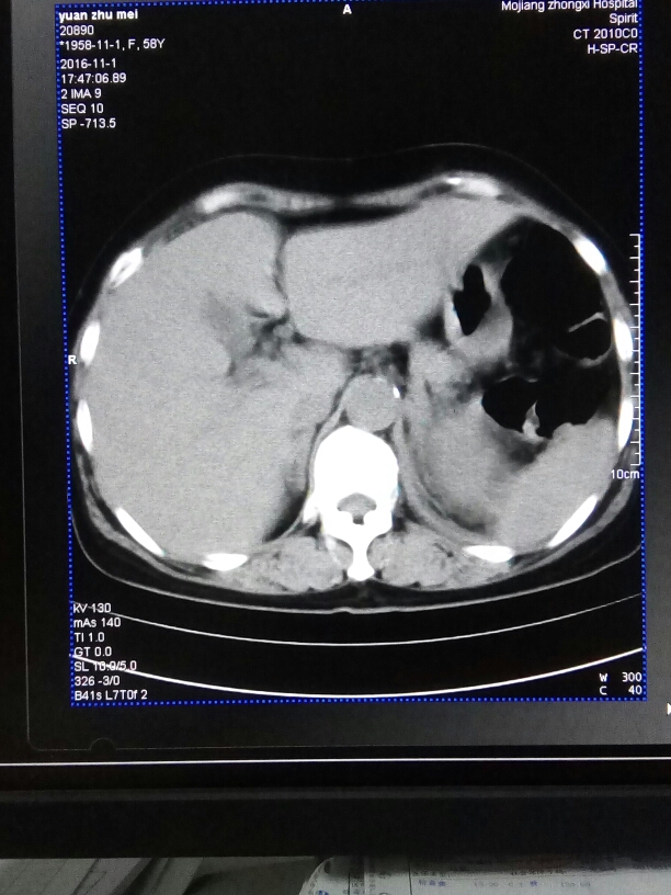 左肾建议增强扫描。另见胃壁明显增厚,需排除占位。