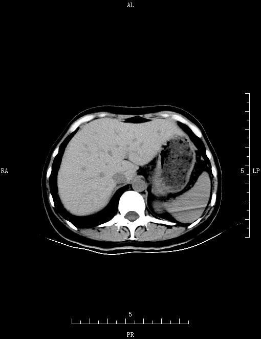 肝内胆管扩张,子宫颈增大且外形欠规整,左侧附件区似见低密度影,子宫周围及直肠窝见液体密度影。考虑:子宫颈占位可疑,建议MRI检查。左侧附件区囊肿?盆腔积液。