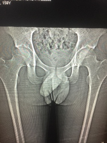 双侧股骨头可见斑片状条片状高密度硬化,边缘较模糊。考虑:双侧股骨头缺血性坏死可能性大。建议MRI检查。