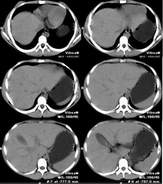 女性,14岁,腹部逐渐增大一年余,近二个月增大明显加快,在当地医院多次检查,未能确诊。无发热、 无贫血、血象正常,原食欲及饮食正常,近来食后感饱胀。月经尚未潮,第二性征不明显。 肿块高密度ct值754.5-964. ...