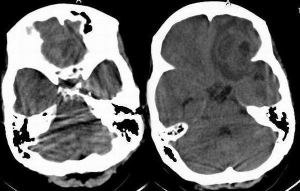 以下是引用cmg在2005-4-9 21:26:00的发言:[br]该病灶发生于左侧前颅窝底部,有占位表现,增强扫描可见多个环状强化影,不知该患者有没有发热症状及副鼻窦炎的表现?考虑该例为鼻源性脑脓肿可能性大。