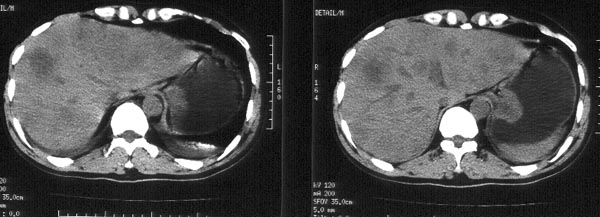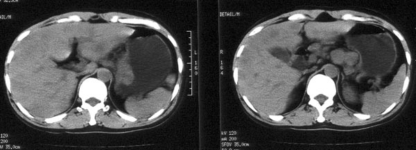 ct诊断:胃贲门癌,并腹腔淋巴结转移及肝内多发转移。