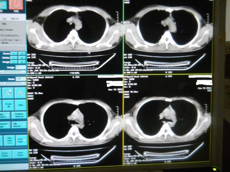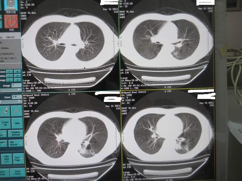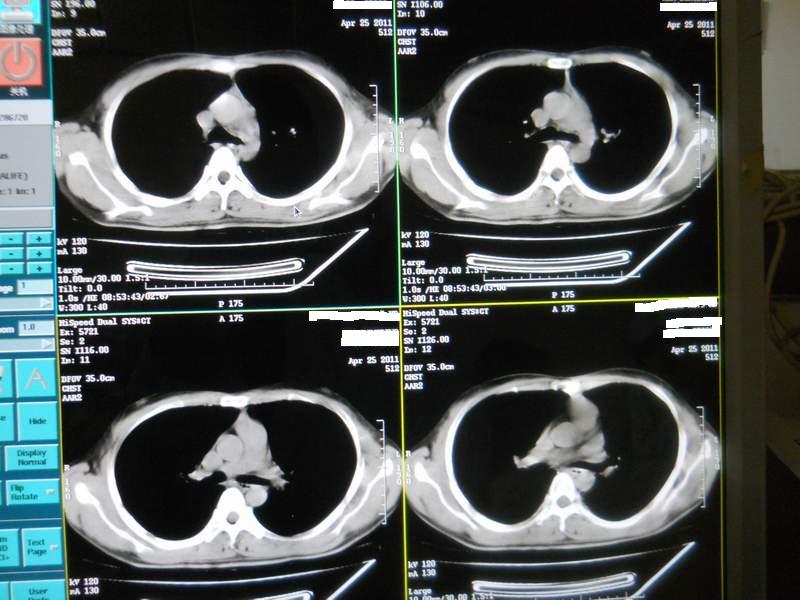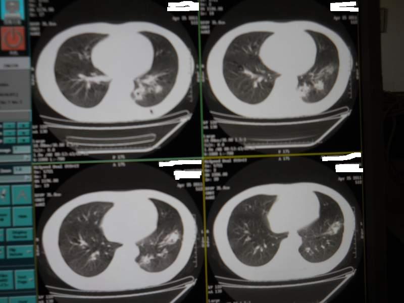 男,22岁,一年前诊断马尔菲尼青霉菌感染,多次复查CT。多次HIV阴性。最近两次CT图片。有实验室结果。