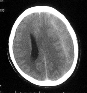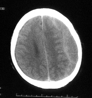 病史:男性,56岁,自觉右侧肢体肌力下降,伴麻木不适半月,逐渐加重。一个月前曾有头部轻微碰伤史,但具体经过不能回忆。